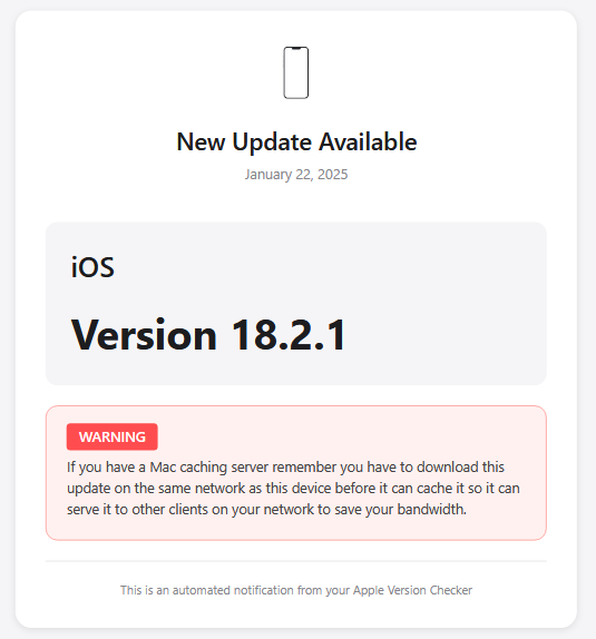 <p style="color: #86868b; font-size: 12px; margin: 0;">This is an automated notification from your Apple Version Checker</p>